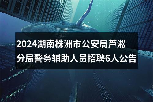 【2024湖南株洲市公安局芦淞分局警务辅助人员招聘6人公告】相关岗位: