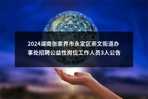 【2024湖南张家界市永定区崇文街道办事处招聘公益性岗位工作人员3人公告】相关岗位: