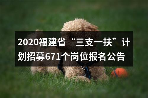 2020年福建省省级“三支一扶”计划招募岗位671个。具体岗位请登录福建省毕业生就业创业公共服务网(以下简称公共服务网,网址:http://220.160.52.58/),进入“服务平台”查询。